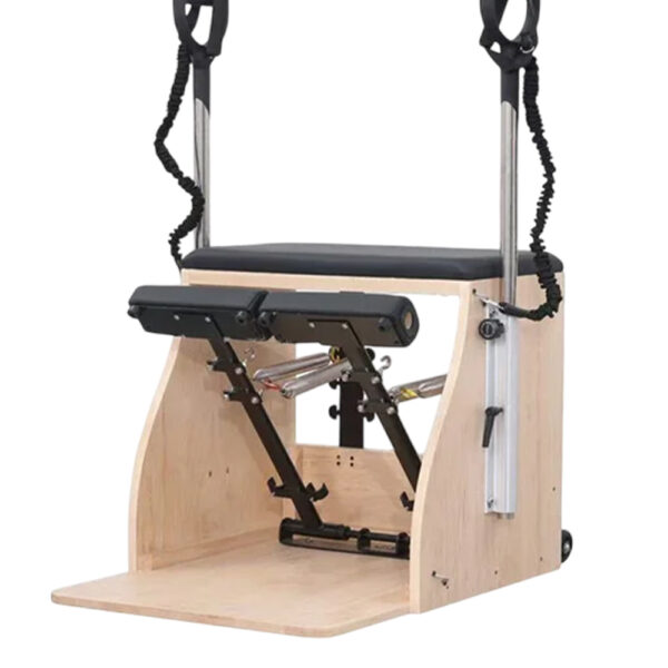 Компактна пилатес столица од бел јавор со прилагодливи пружини. Одлична за стабилизација, баланс и сила — дури и во мал простор.